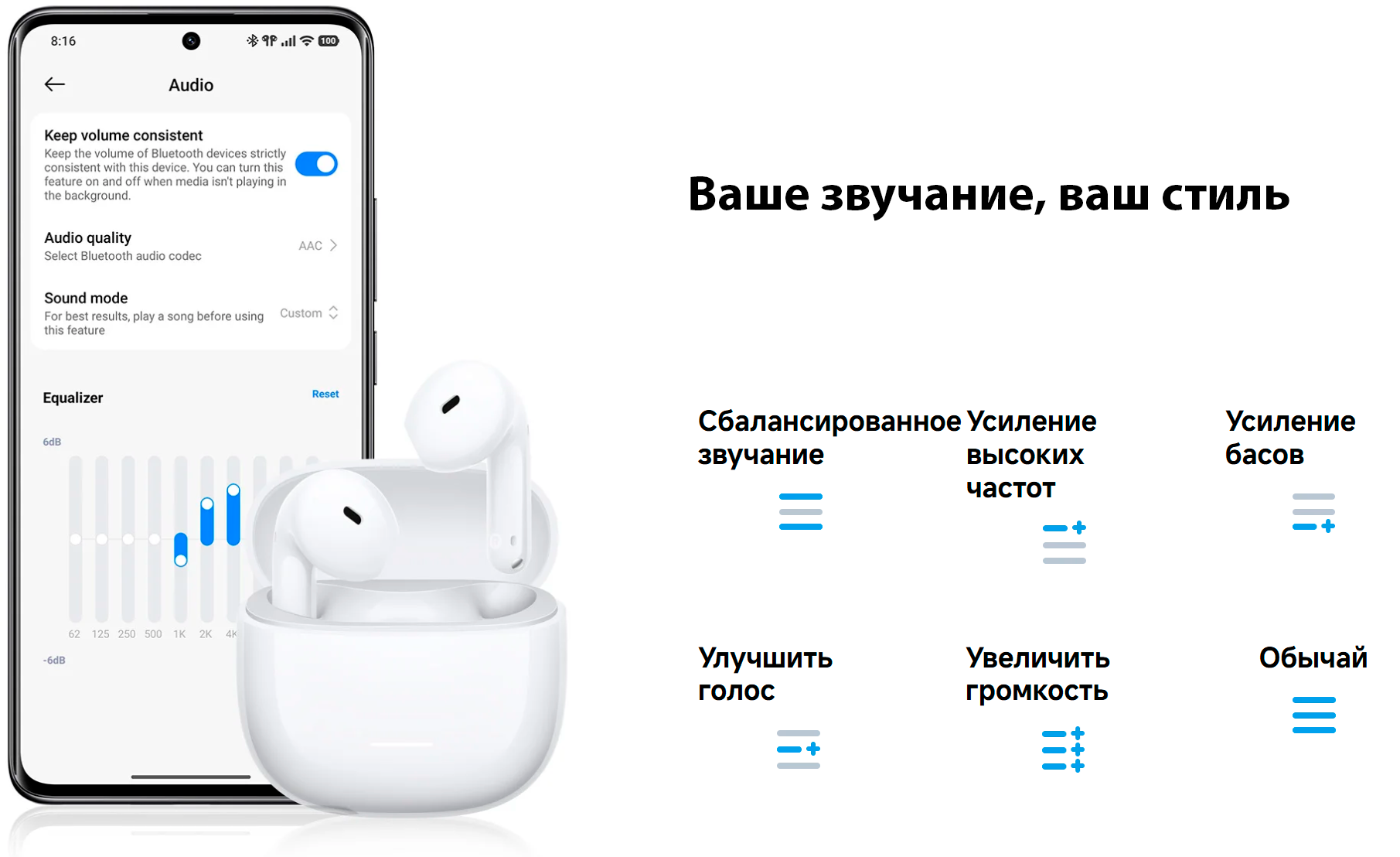 Модель поддерживает прозрачный режим, который позволяет лучше слышать окружающие звуки, не снимая наушники. Сенсорное управление делает использование более удобным, а через приложение Xiaomi Earbuds можно гибче настраивать работу наушников и управлять основными функциями со смартфона.