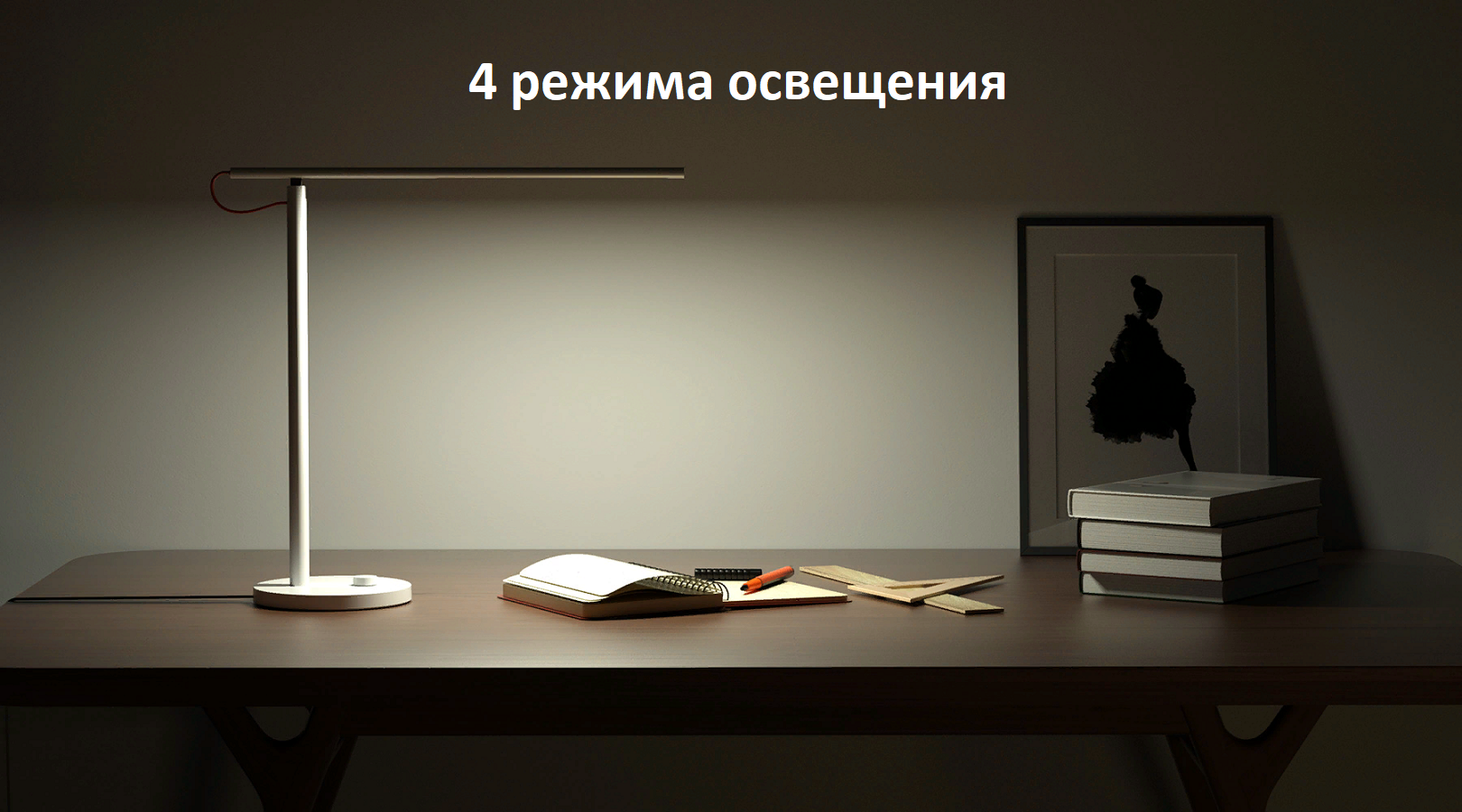Четыре режима освещения нужны для соответствия разным требованиям к источникам света. Каждый режим обеспечивает защиту глаз и удовлетворяет базовые потребности в освещении. В режиме концентрации настольная лампа создает пульсации света, чтобы пользователь мог не забывать об отдыхе, что повышает продуктивность и снижает нагрузку на глаза.
