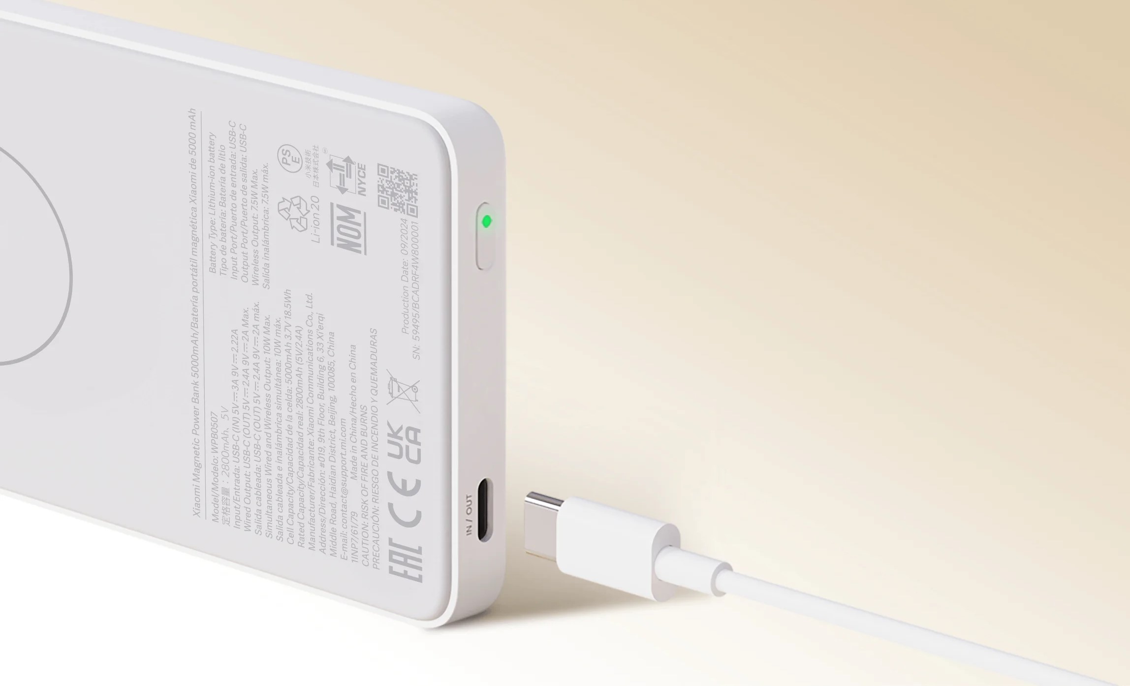 Портативный аккумулятор Xiaomi 33W Magnetic Power Bank 10000mAh (встроенный кабель) белый BHR9822GL